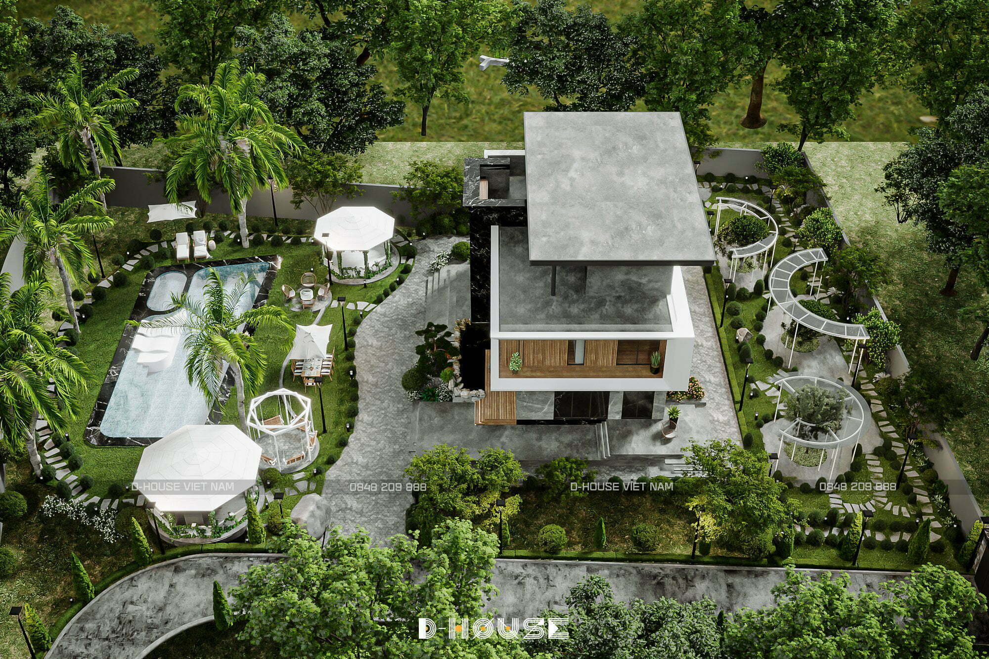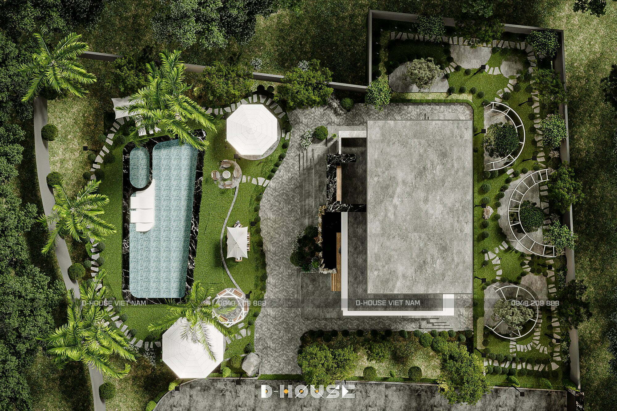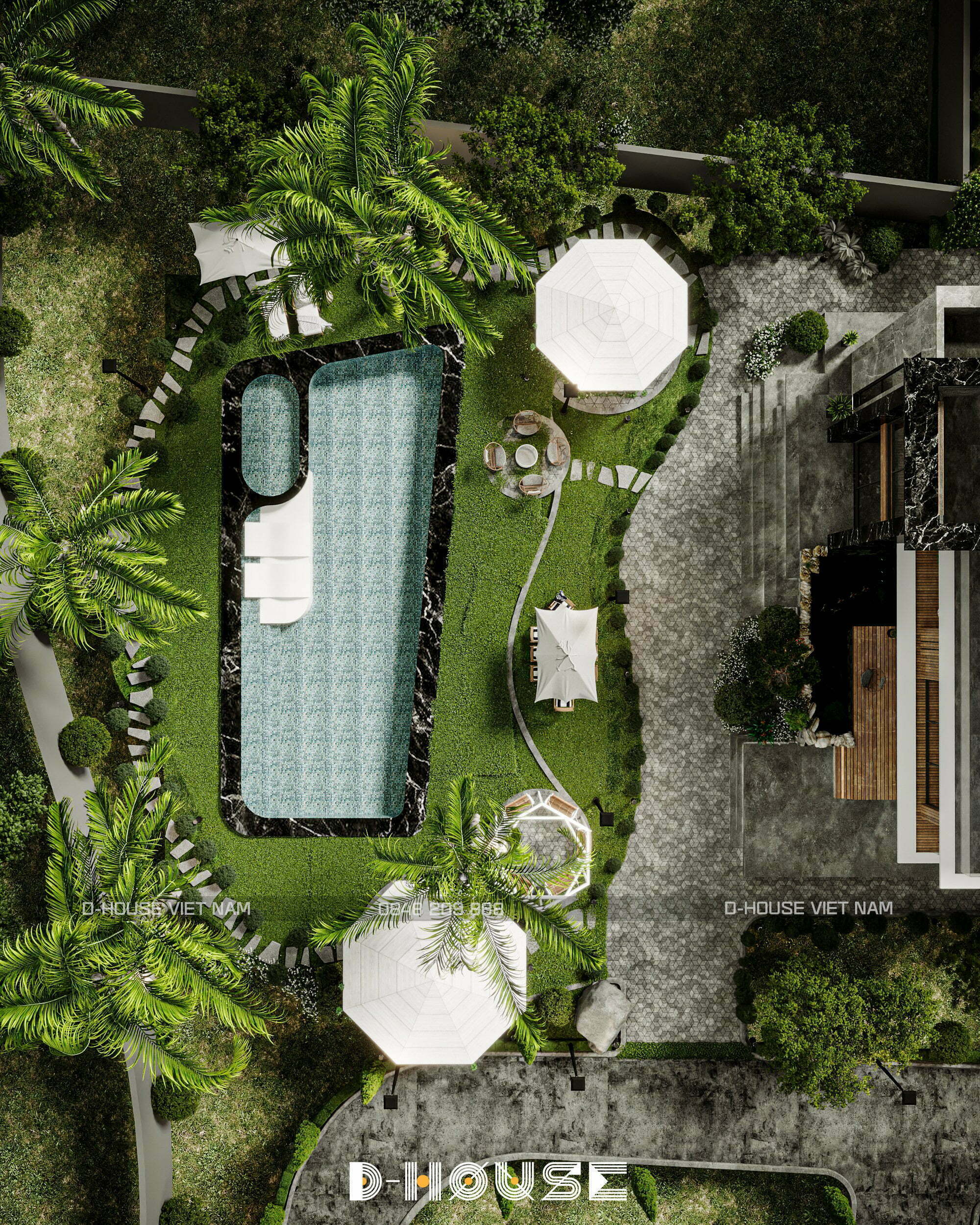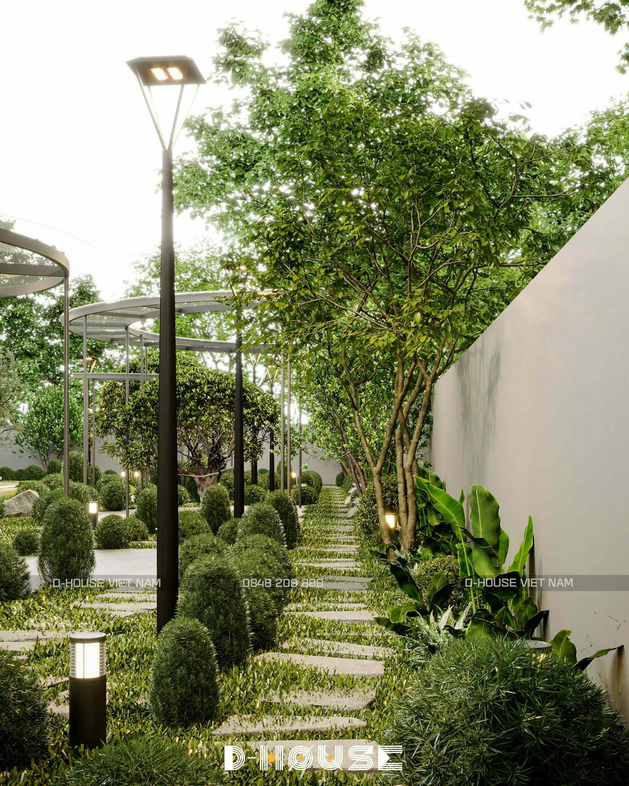 Dự án có không gian sân vườn rất rộng, nên có không gian để bố trí bể bơi, không gian đi bộ, thư giãn ngoài trời,…