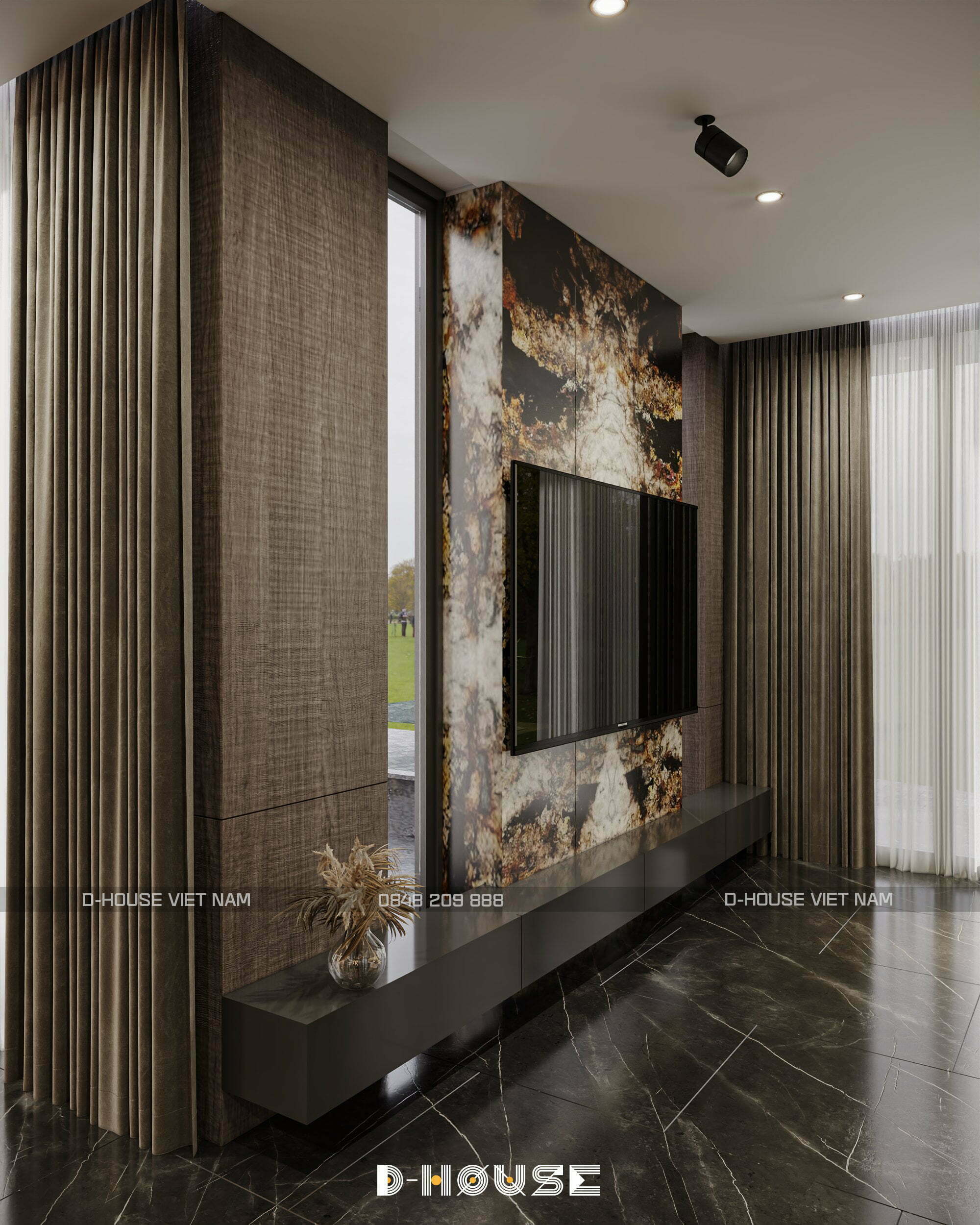 Vách tivi sang trọng với đá xuyên sáng tự nhiên